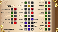 New finances, laws and policies system. The system allows you to make several choices on how the country will be governed. The choices will affect 7 new variables of the people in your country, which...
